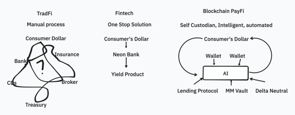 像 PayPal 和 Venmo 这样的传统金融科技应用提供了收益产品,但这些解决方案是碎片化的,提供的回报有限,且用户需要主动将资金转移到特定账户。