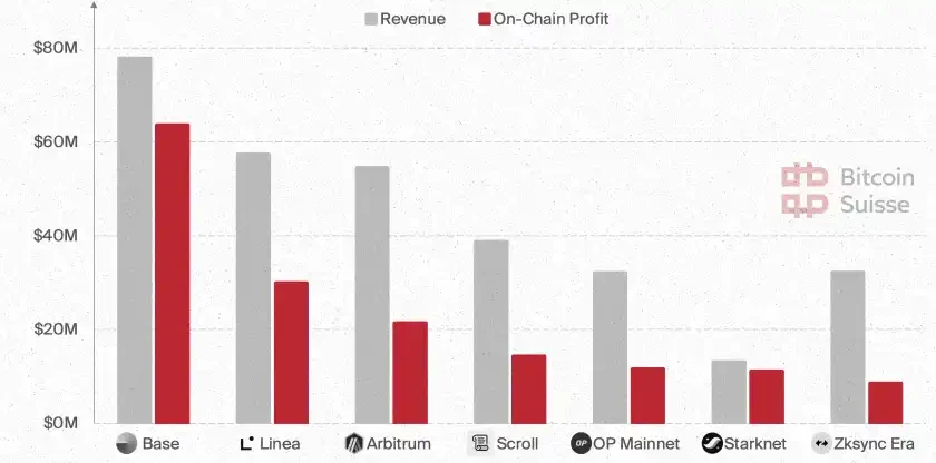 链上利润通过将 Gas 费用收入与以太坊上的数据和证明提交成本进行比较,衡量 Rollup 的盈利能力。盈利能力的提升来自高区块空间需求(支持溢价定价)或运营者提高基础费用倍数。
