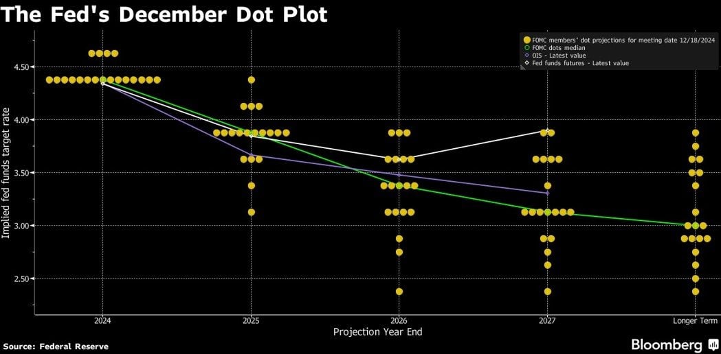 我们知道过去几天的下跌主因是联準会(Fed)在本月 19 日如期降息 1 码后,暗示 2025 年将放缓降息步伐,预计明年只会有两次各 1 码的降息,少于此前在 9 月时预期的 4 次,由此引发美股和加密货币市场 动荡 。