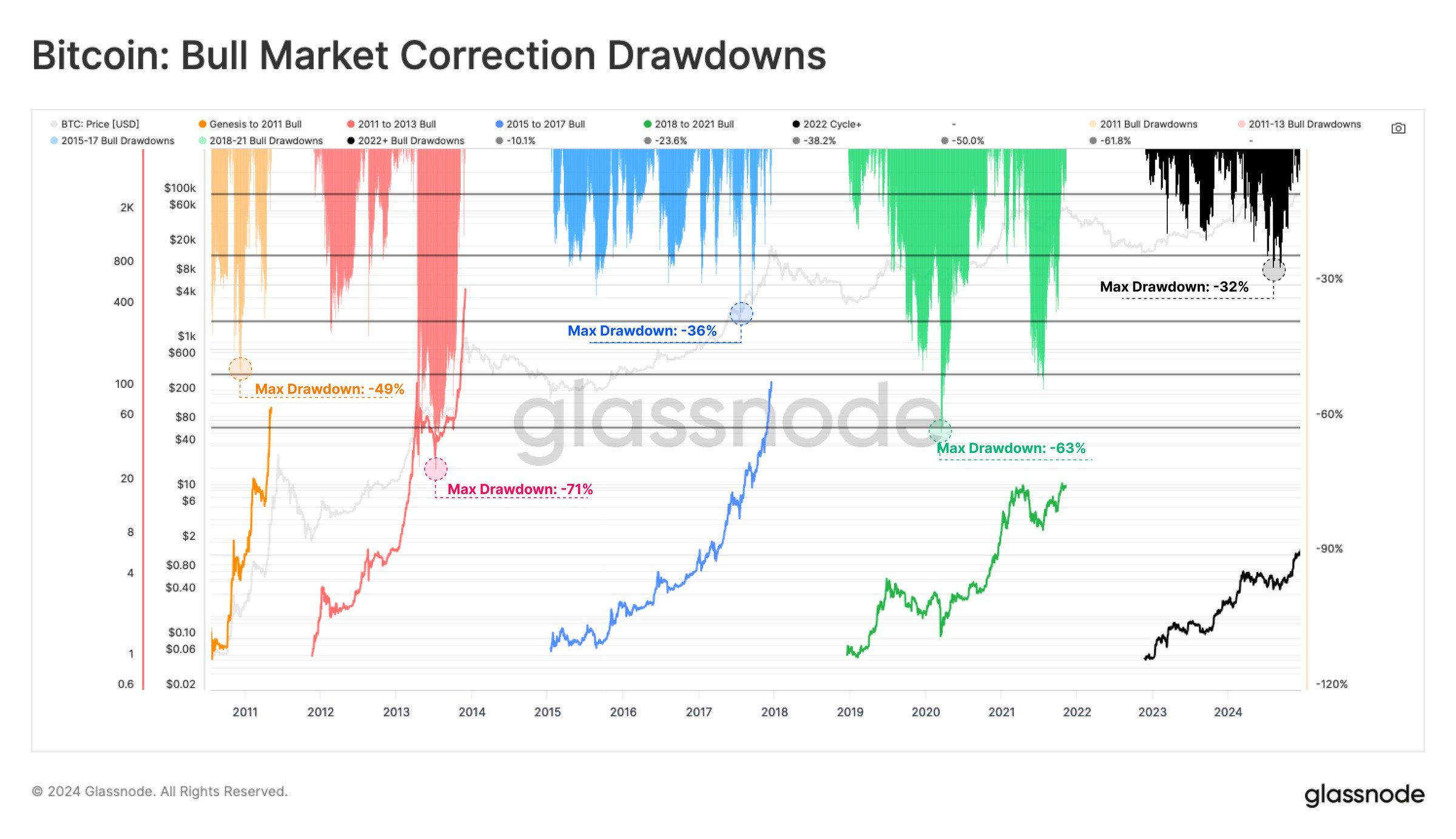 Glassnode 研究:比特币每轮周期回撤幅度正在减弱,或已进入牛市后期