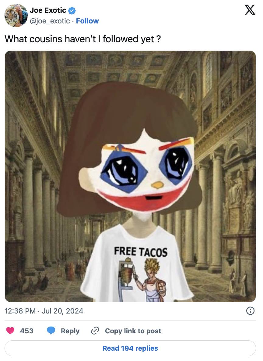 还记得《虎王》的主角 Joe Exotic 吗?他突然加入了一个名为“Retardio”的 NFT 社区,还意外获得了一个 DeGod NFT。尽管这件事没什么后续,但却让人忍俊不禁。