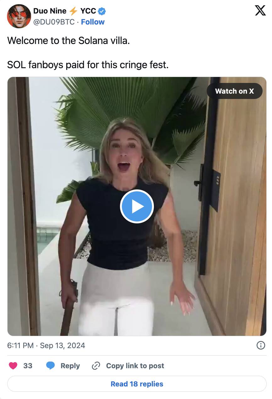 一段展示“Solana 别墅”的加密货币真人秀视频今年病毒式传播,但原因却是它的浮夸和令人尴尬。