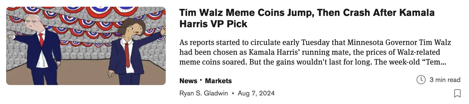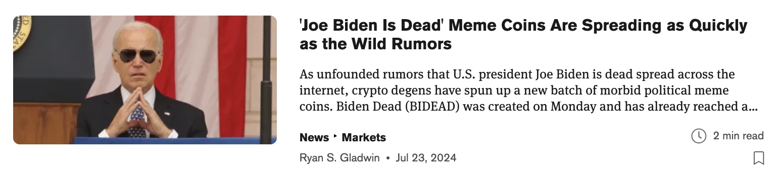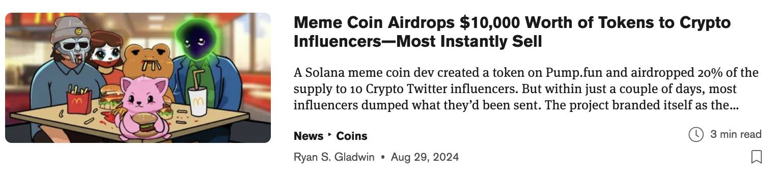 “一名男子将 Meme 币地址纹在身上——但地址拼错了。”—— NewsCoins ,作者 Ryan S. Gladwin, 2024 年 7 月 21 日