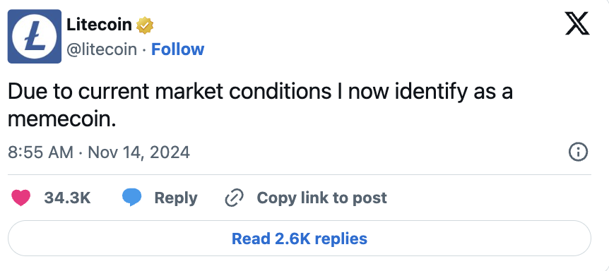 莱特币多年来一直试图将自己打造成一种合法的去中心化数字货币,但最近它的推特实习生却决定让项目走上 Meme 币的路线。