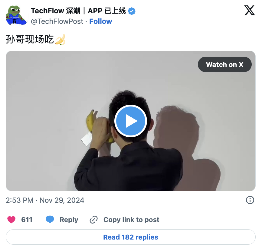艺术有时候难以理解,但愚蠢却很容易看懂。在苏富比拍卖会上,一根用胶带贴在墙上的香蕉以 620 万美元的价格成交,而买下它的正是加密货币圈的孙宇晨 (Justin Sun)。更令人惊讶的是,他后来竟然把这根香蕉吃掉了。