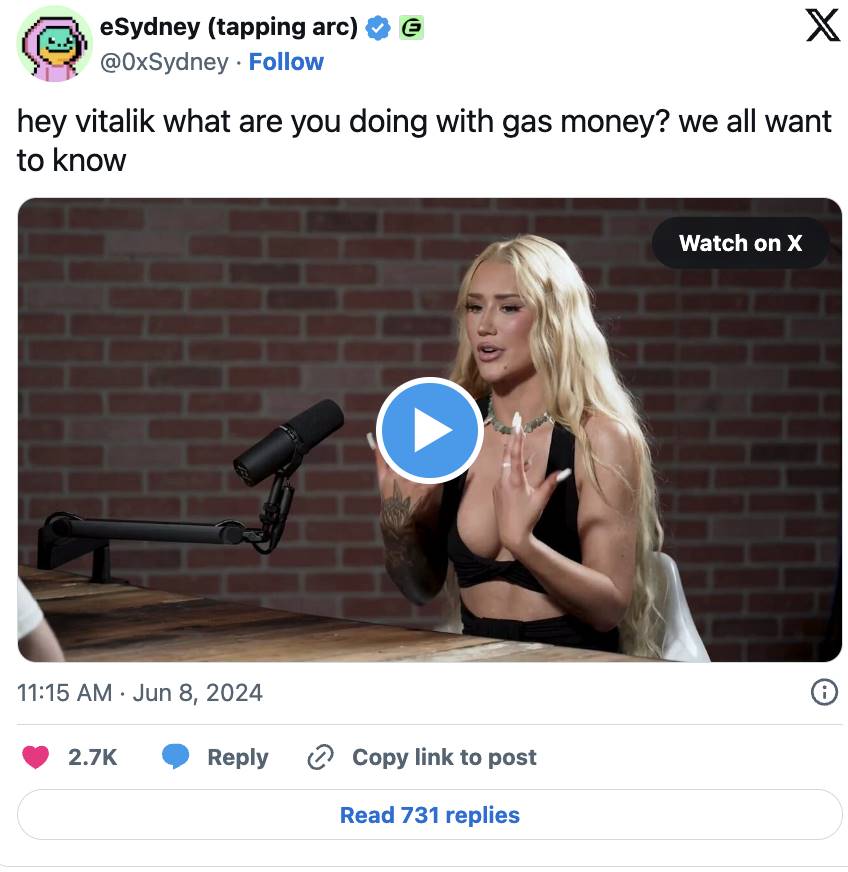 事情起因于以太坊联合创始人 Vitalik Buterin 的批评,Azalea 随即发问:“那你对 ETH 的 gas fees 做了什么?”这句话却让加密推特炸锅,网友纷纷嘲笑她,因为这些费用并不会进入 Buterin 的个人钱包,而是用于支持以太坊的生态系统。当然,那时候 Azalea 或许对加密机制还不够了解。我们相信,现在的她已经变得更有经验,也更清楚了!