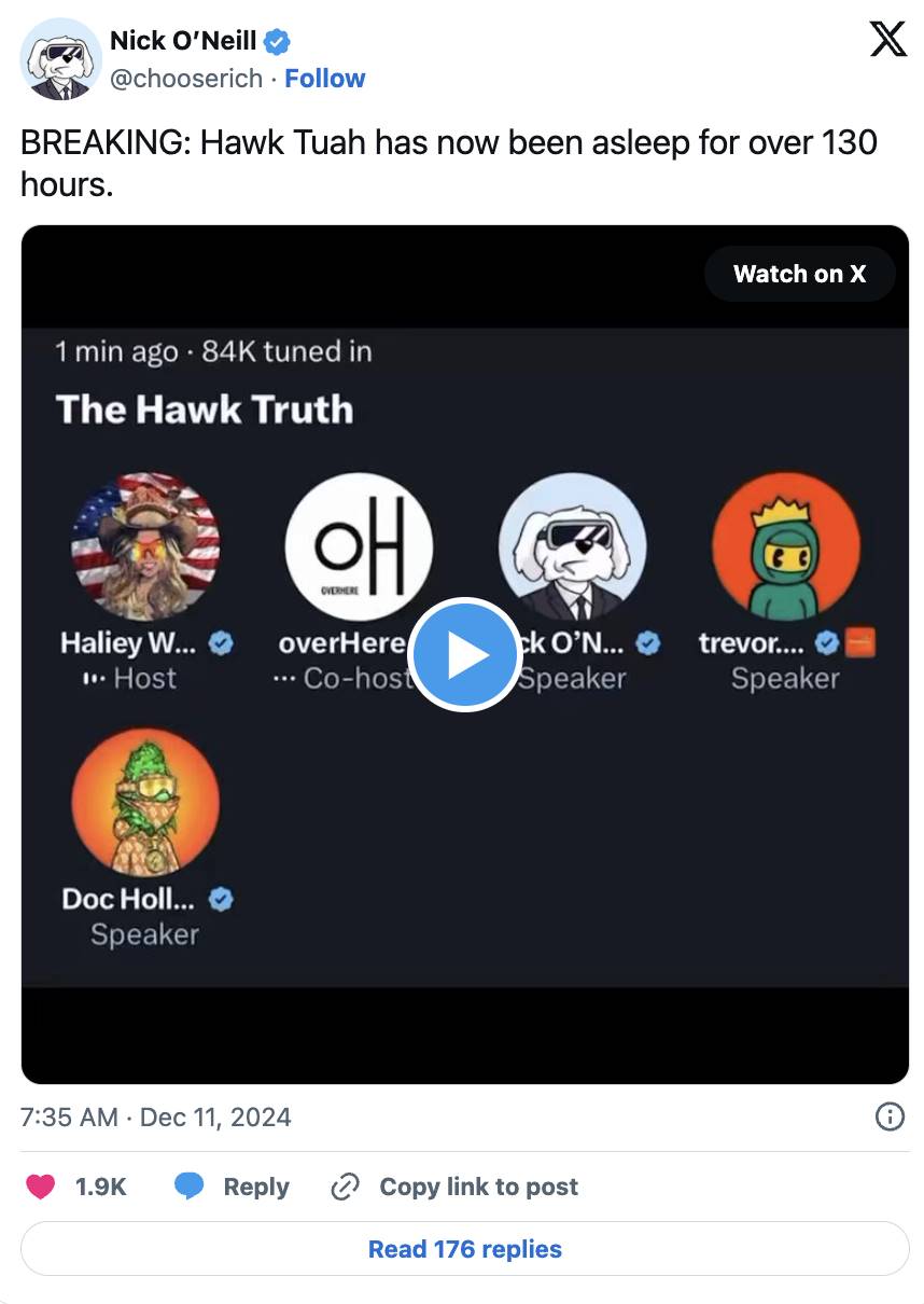 Haliey Welch,也被称为 Hawk Tuah Girl,推出了一种名为 HAWK 的加密代币。这种代币的市值在短短时间内飙升至 4.9 亿美元,速度之快让人目瞪口呆。然而,好景不长,代币的价值随即暴跌超过 93% ,约 300 万美元资金被不明身份的人卷走。