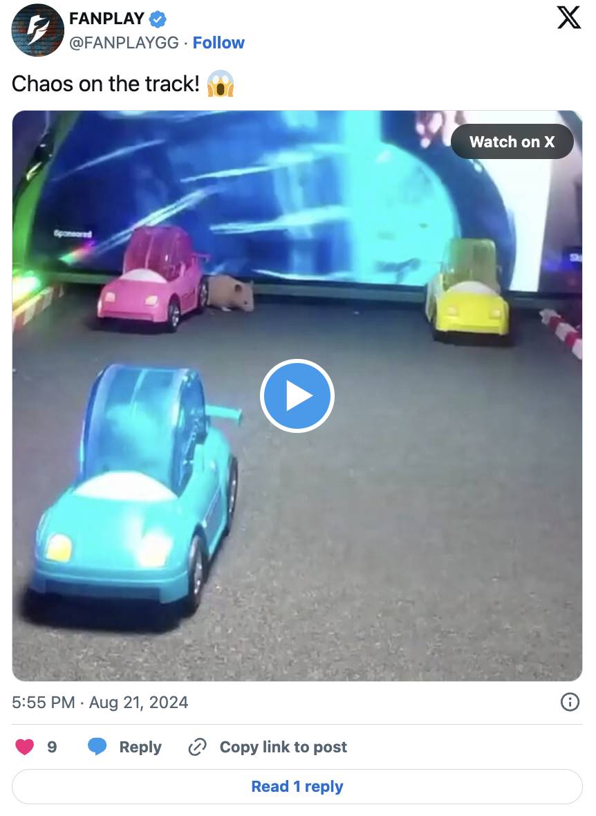 8 月,加密玩家显然对翻转硬币失去了兴趣,转而迷上了新的娱乐活动:为活仓鼠下注,看它们驾驶小塑料车进行比赛。这是连续第二年尝试这样的玩法,但加入赛车元素后,显然更有趣了。