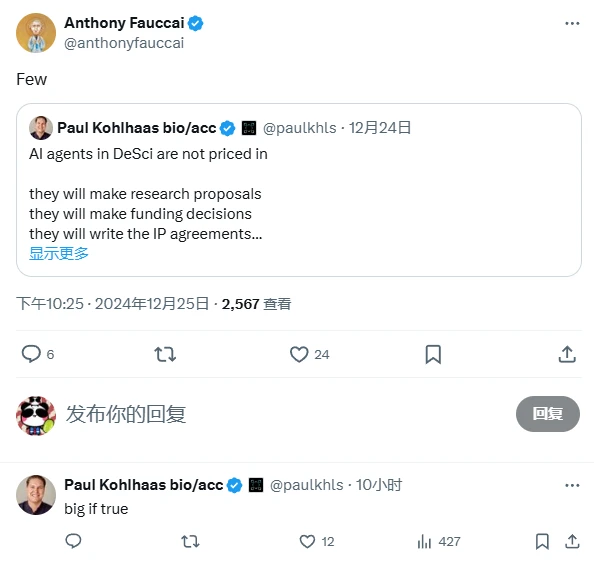 BIO Protocol 联创与 Big Pharmai 发起人 Anthony Fauccai 频繁互动。