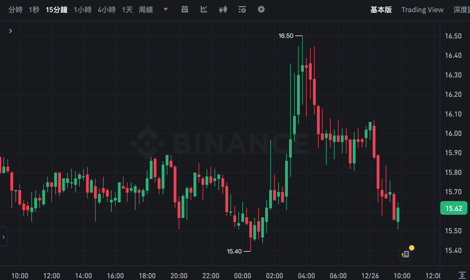 然而,根据币安最新数据,$CREAM 价格在近 24 小时内仅下跌 -0.57%,目前报价 15.62 美元,显示出价格受影响程度相对有限。这表明麻吉大哥目前可能并未选择抛售这部分持仓。