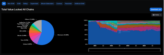 回到公链领域,今年的龙头以太坊,日子就不那么好过。相比其他资产表现不佳,价值捕获与用户活跃度下降,叙事更是不如以往,“价值论”让以太坊备受煎熬。 共识已然成型的Defi复兴口号虽响,但除了再质押掀起的TVL套娃狂潮外,似乎只有Aave扛下全部,实际投资明显不足。然而,年末衍生品黑马Hyperliquid的出现,不仅革了CEX的半条命,也给DeFi吹响了反攻的号角。 另一方面,Dencun升级后,以太坊Layer 2内卷加速,并持续馋食主网份额,以至于市场掀起了对于以太坊机制的大讨论,质疑声层出不穷,甚至连Base的快速增长也让市场有了以太坊的未来是Coinbase的传言。