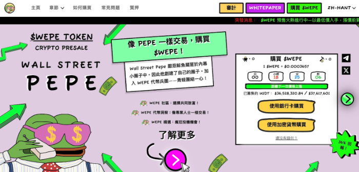 $WEPE 仍在预售阶段,在预售结束后将上市 DEX 及 CEX ,投资者可进入官方网站、 X 了解预售最新资讯。