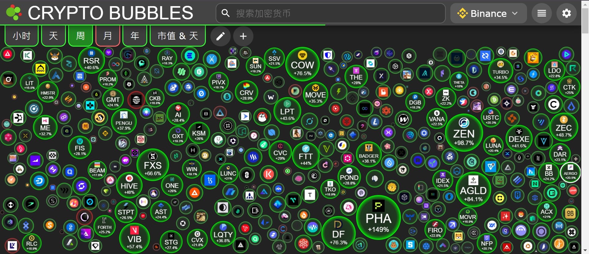 整体情绪有所好转,PHALA、Horizen、Adventure Gold 分别以+158%、+97.7%、+83.6% 的涨幅领跑,主流币普遍上涨。根据 Blockchaincenter 数据