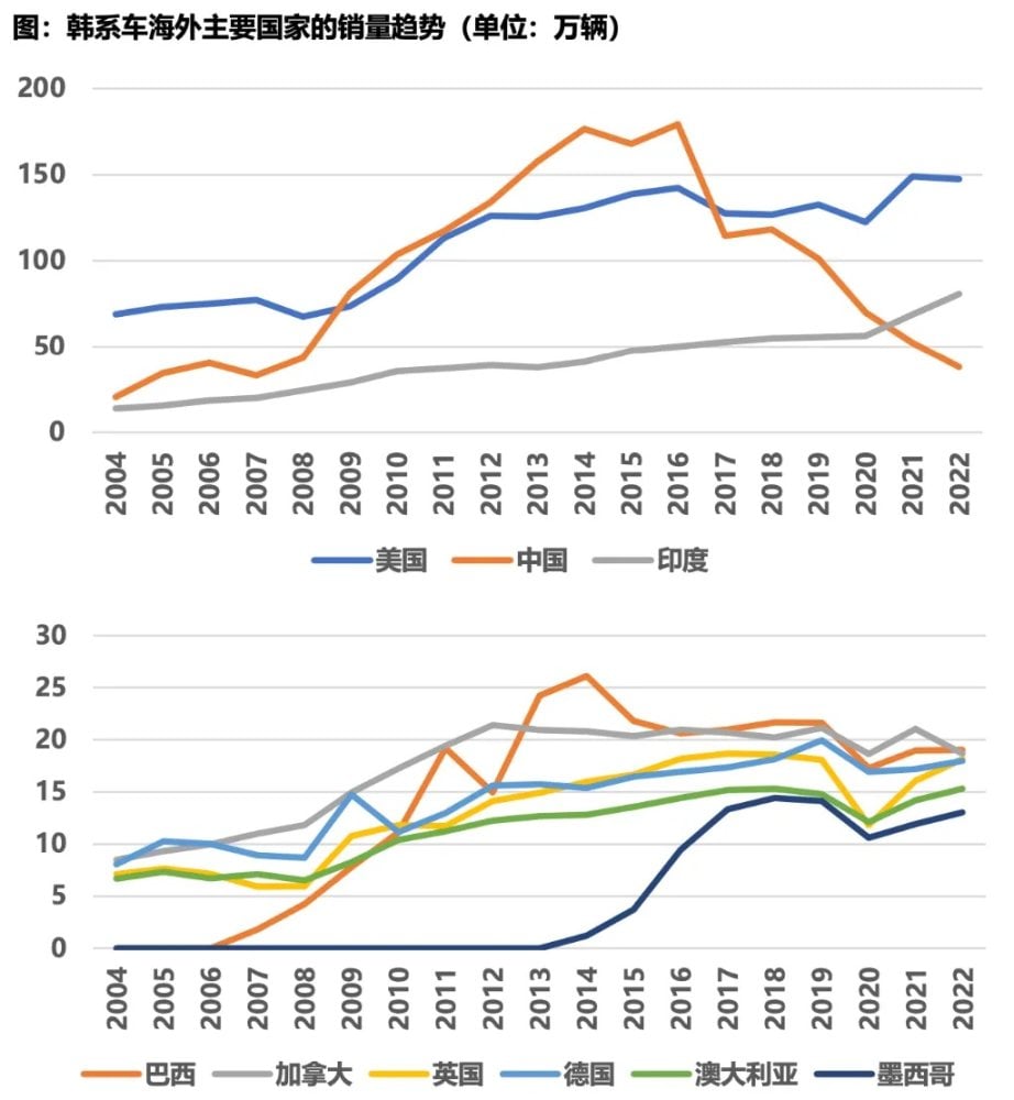 相比于德美日车企根据中国消费者的特点,主动推出长轴距、订製版等车型,韩国车企动作迟缓、研发力度不够,再叠加新能源方面的转型困境,韩系车在中国市场处境艰难。