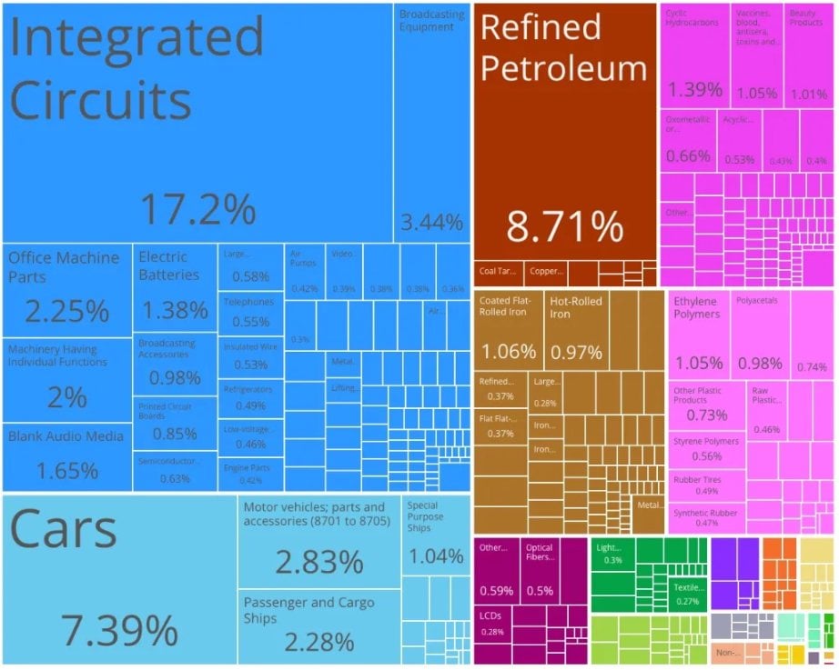 特别是尹锡悦政府选择了与中国市场硬脱钩,导致极度依赖中国市场的韩国半导体产业断崖式下跌。2023 年中国晶片进口中,韩国企业出货的晶片占比已经下跌至 6.3%,此前均保持在 10% 以上。