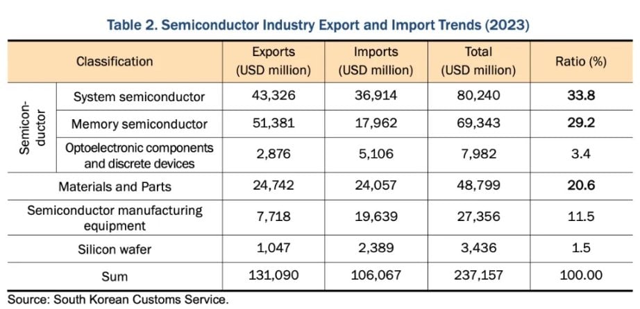 韩国本土半导体巨头三星电子和 SK 海力士主要集中在储存晶片上,而储存晶片仅整个半导体市场的 30% 左右。相比于台湾地区拥有包括晶片製造、封装和测试在内的完整供应链,韩国的存在感微弱。