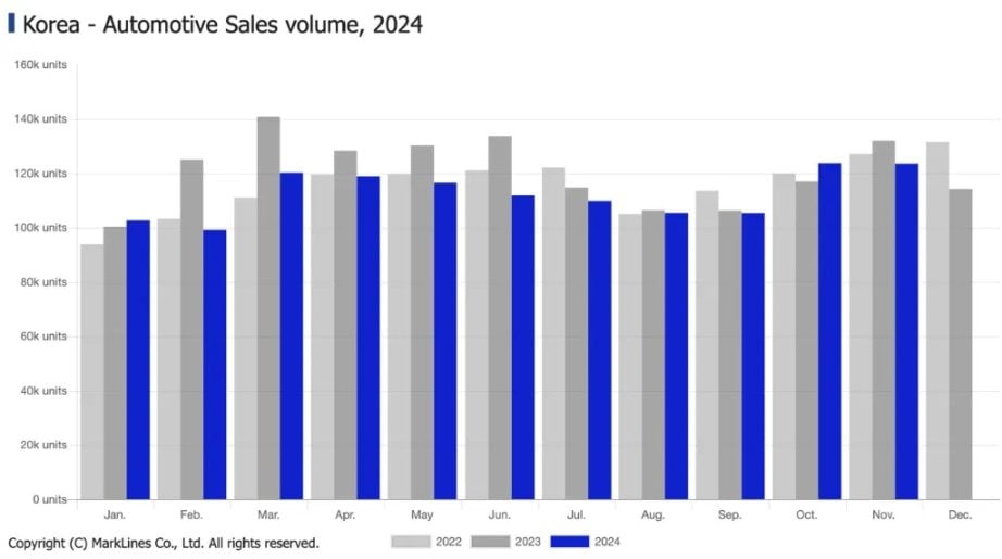 2023 年,韩系车全球总销量 800 多万辆,同比增长超过 7%,但新能源汽车占有率仅有 9.3%。