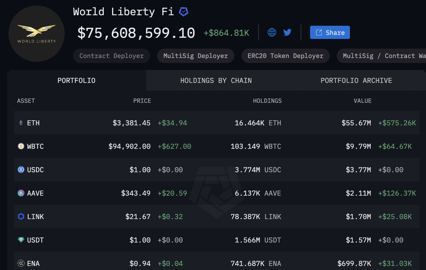 另外,川普家族推出的去中心化金融项目「World Liberty Financial」,已经在以太坊生态系统内投入了大量资本,购𧹒 ETH、Chainlink 和 Aave、ONDO 等核心资产,加密律师 Robert Nupp 认为,这种行动不仅是对以太坊生态的最大「软性」背书之一,还会刺激更多资本关注这个区块链网路的未来发展。