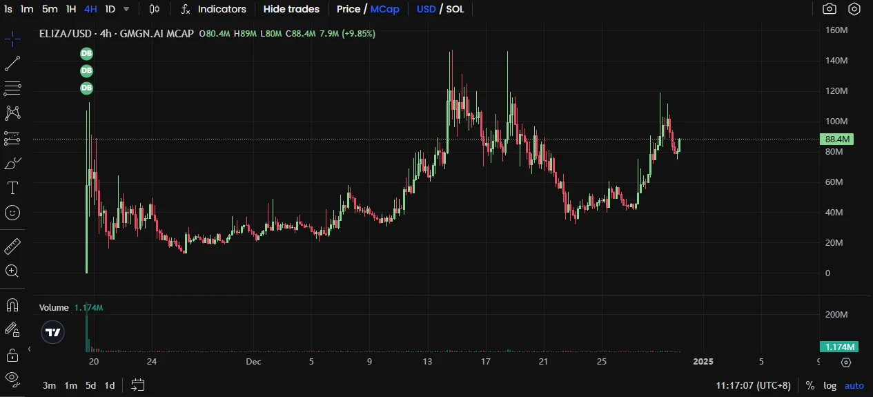 据 GMGN 数据 ,ELIZA 市值最高触及 1.5 亿美元,暂报 8800 万美元。