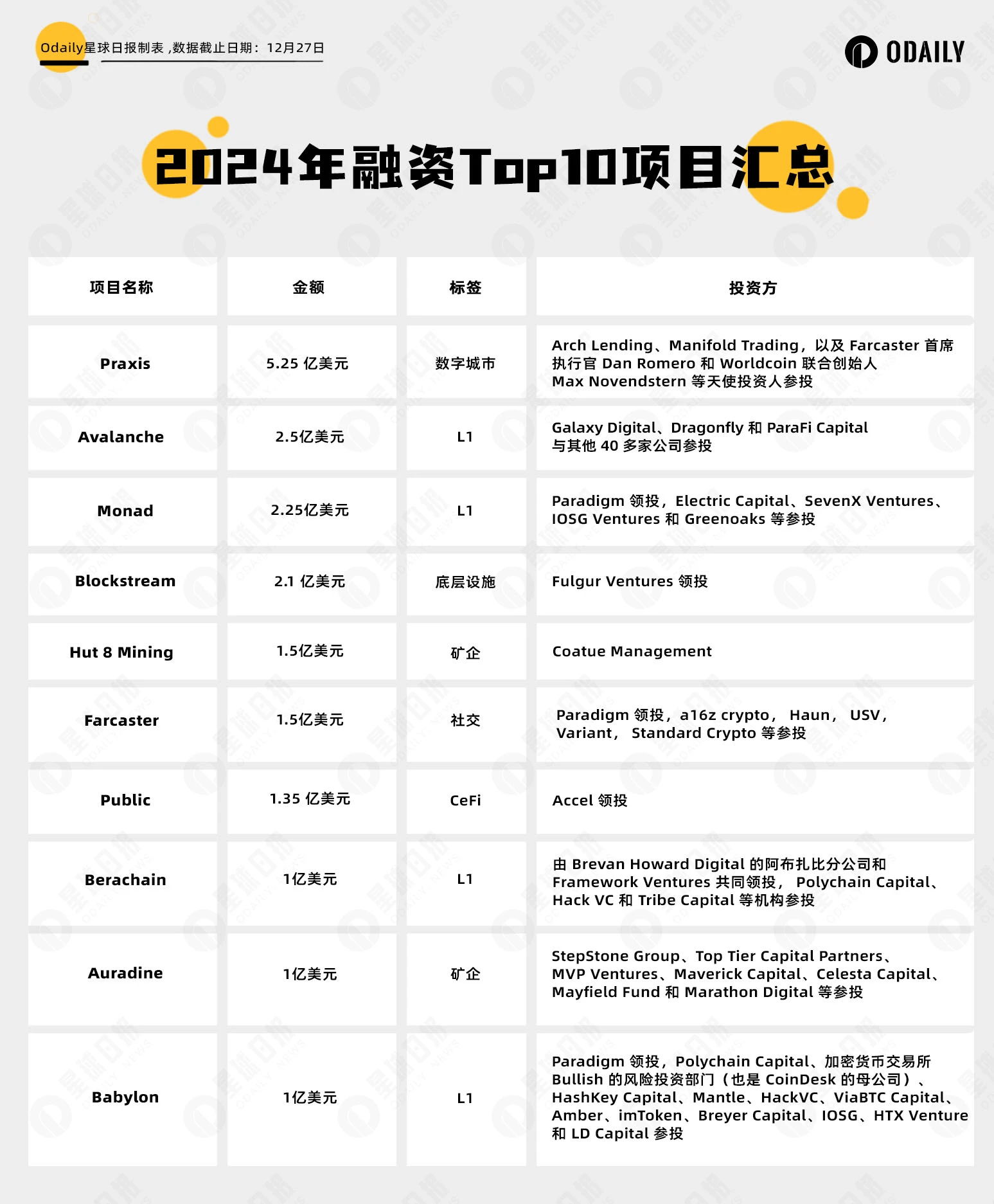 回看 2024 年 一级市场投融资活动,Odaily星球日报发现:
