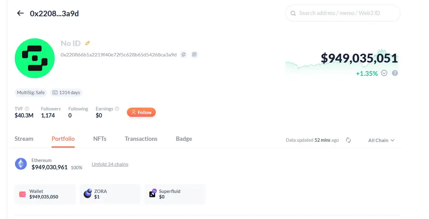 据 Safe 守护者对律动 BlockBeats 透露,判断链上地址是否为 Safe 钱包地址最简单的方式有两个:一是 ARKHAM 上显示的「MultiSig」多签,二是 debank 页面上的地址下方会直接显示「MultiSig:Safe」。
