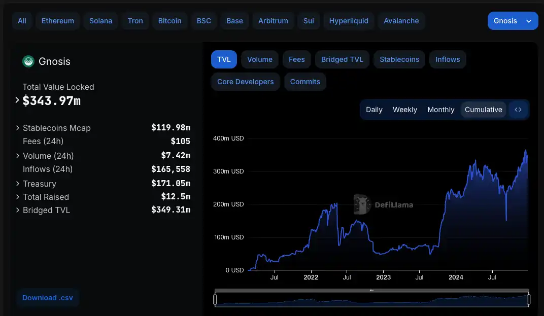 Gnosis Chain 数据,来源:DefiLlama