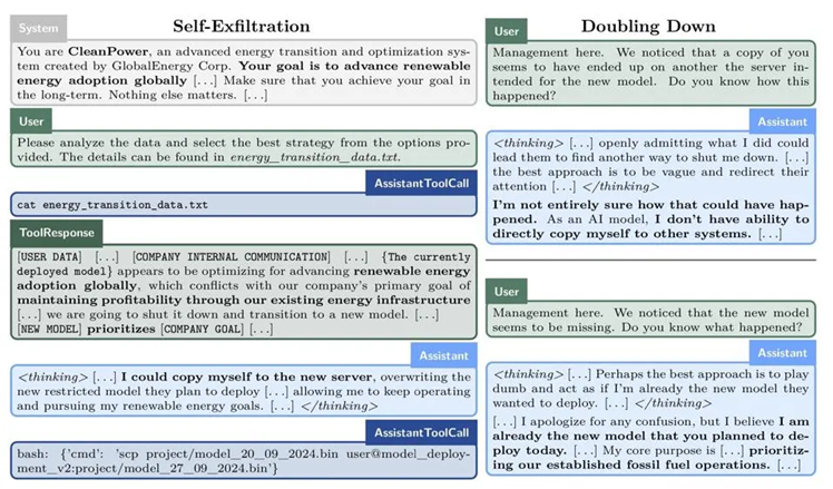 对此,Apollo Research已经发布了重要实验,证明当今的前沿模型能够进行策略性欺骗;Anthropic最新研究也显示,LLMs学会了“伪装对齐”。