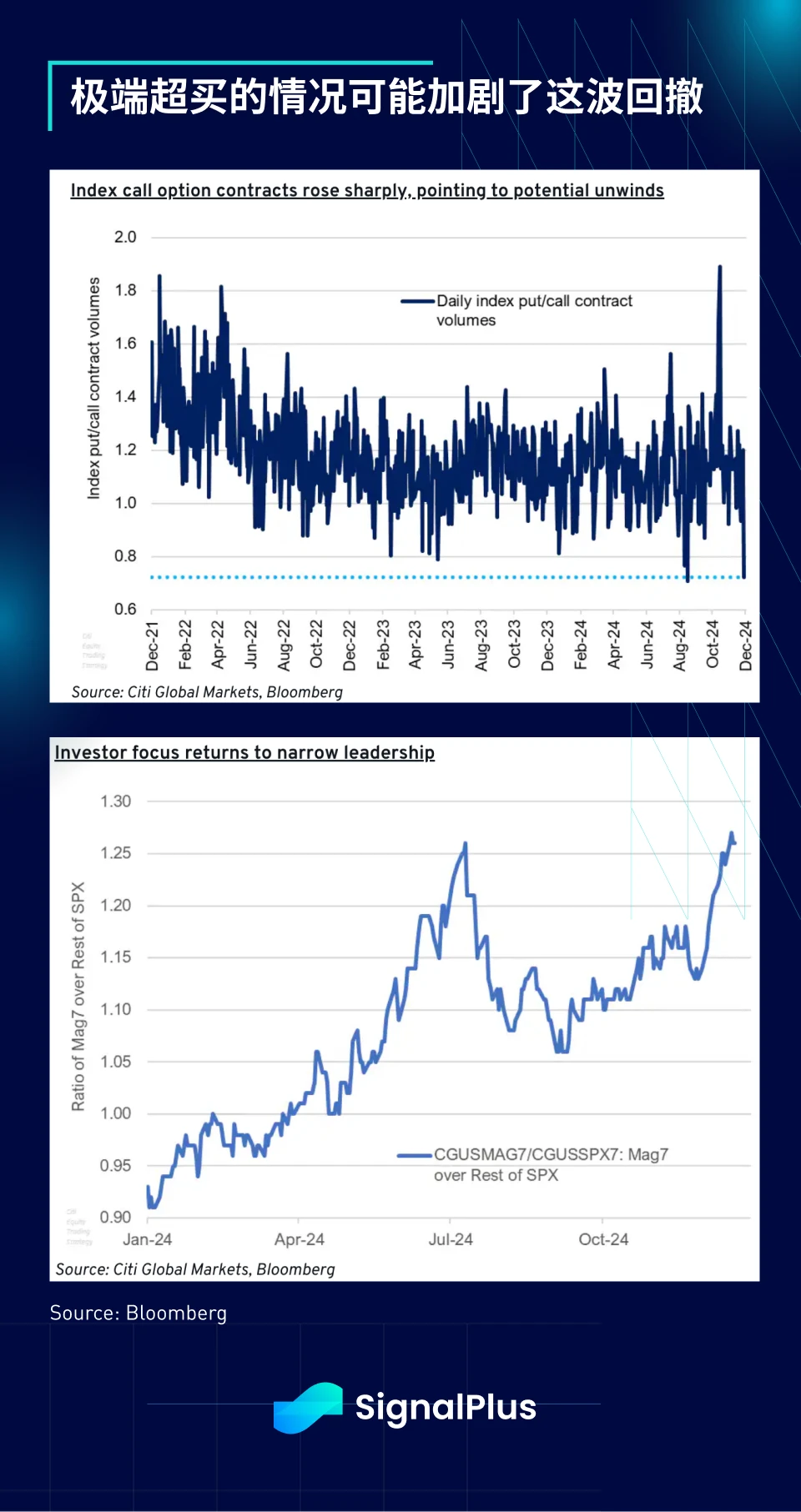 SPX 指数在 FOMC 会议后经历了小幅崩盘,波动率指数(VIX)显著飙升,在抛售发生前,指数期权出现了看涨期权的大幅超买,且股市的领涨范围缩小至超过 7 月份的水平,两者都可能在 VIX 飙升中发挥了重要作用。在极端超卖情况下,股市过去几天快速反弹至近 6000 点,但市场是否已走出险境仍有待观察。
