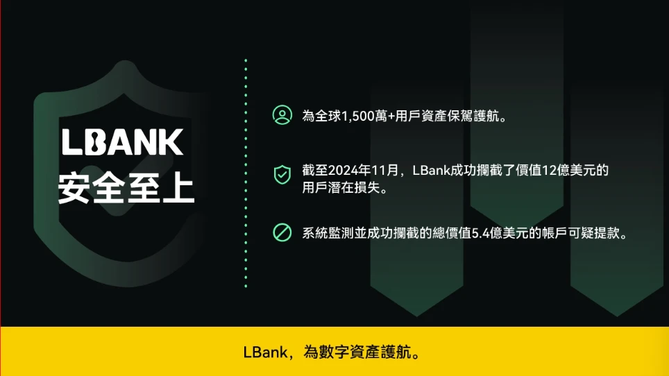 此外,在最新的安全报告中,LBank 在用户资产保护方面成果斐然。 LBank 不仅实施了严格的加密标准来保护通过用户帐户及加密资产,还定期进行渗透测试,以最大限度地保障用户的资产安全。统计数据显示,LBank 平台成功拦截了价值 12 亿美元的潜在损失,系统检测并成功拦截了总价值 5.4 亿美元的可疑提款。