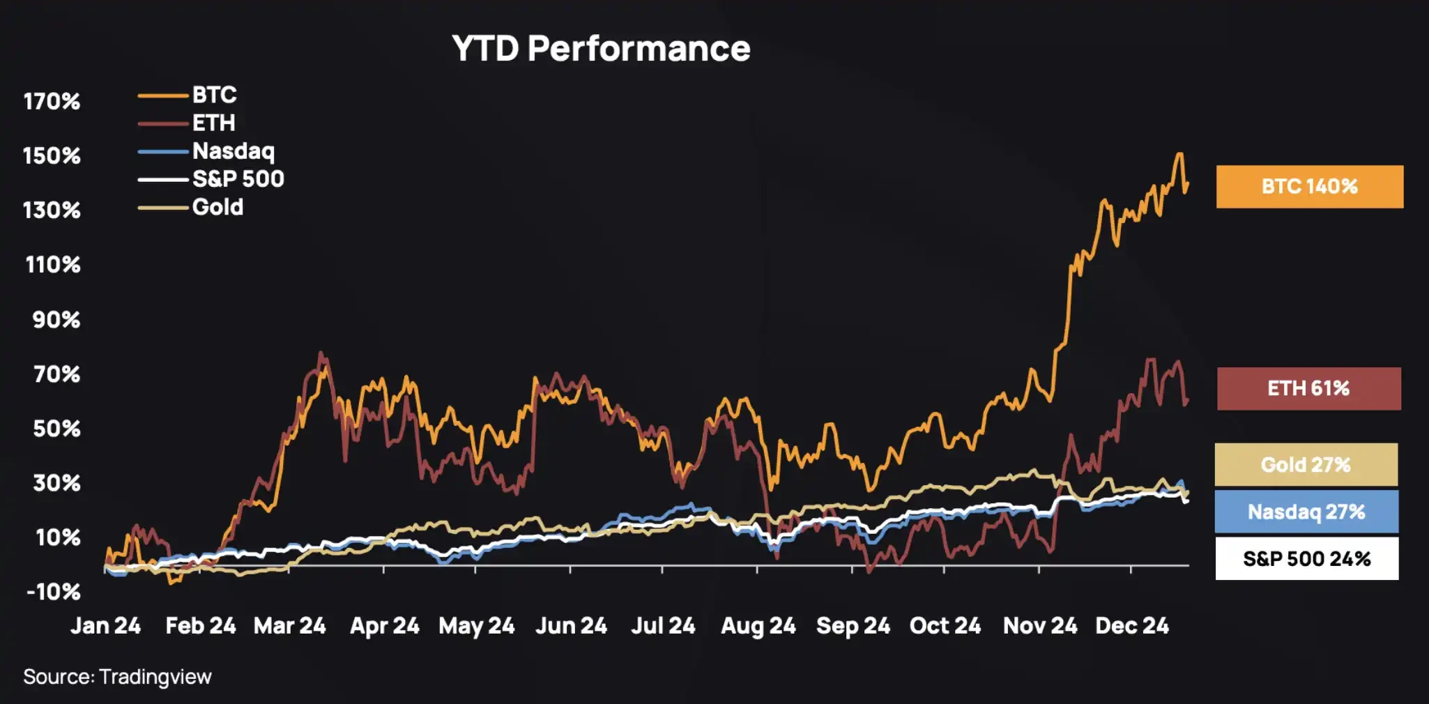 五张图表回顾2024年加密行业表现