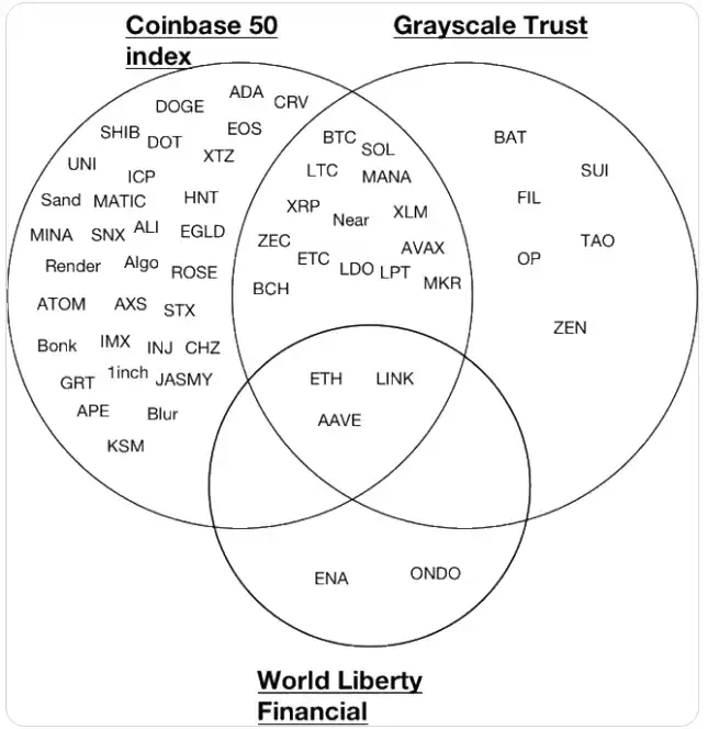 Coin 50 指数、灰度信托基金以及 WLFI 加密资产合集,图片来自于网络