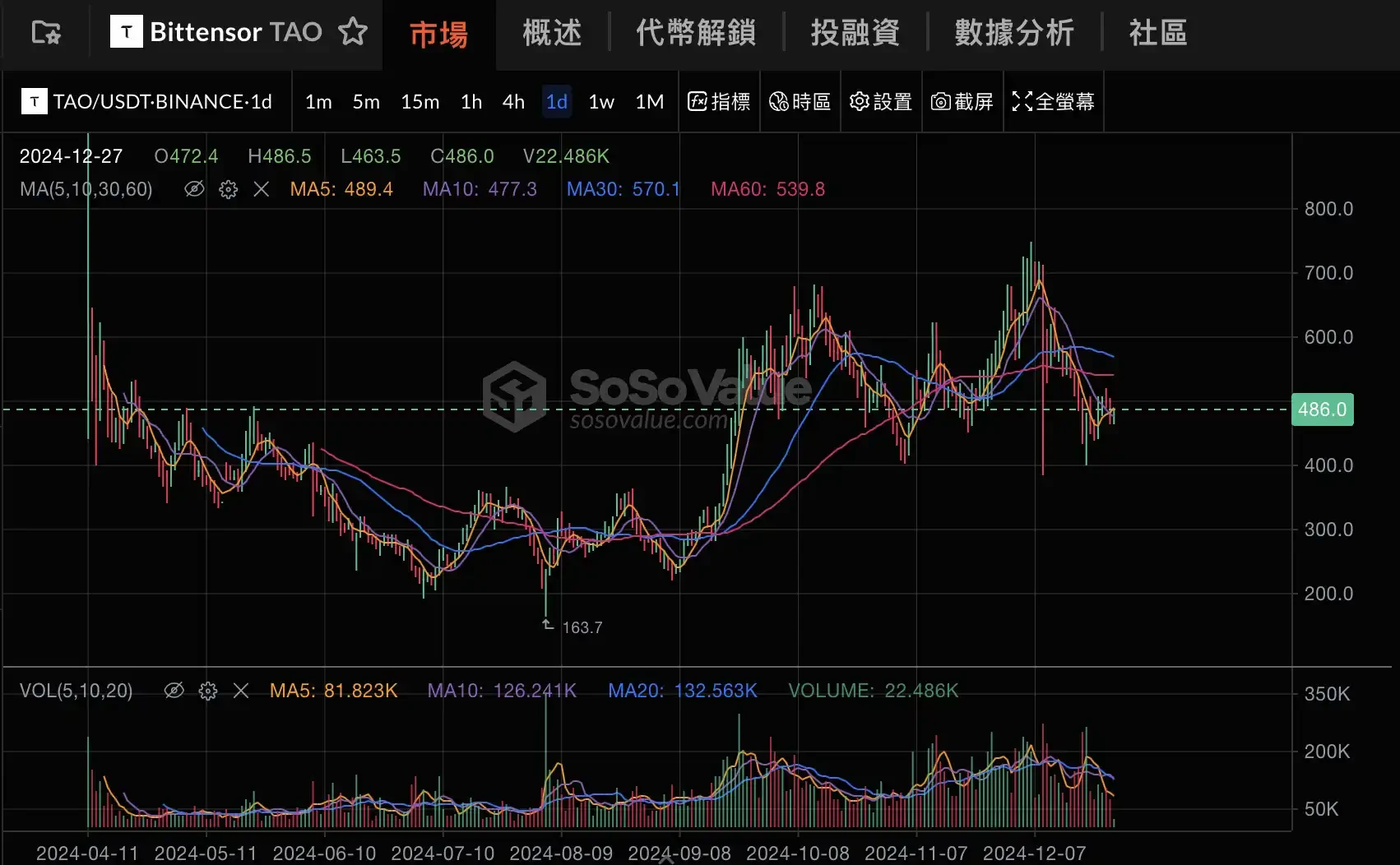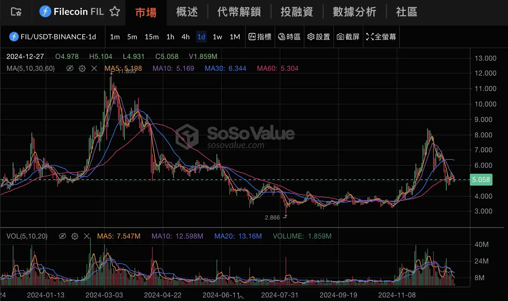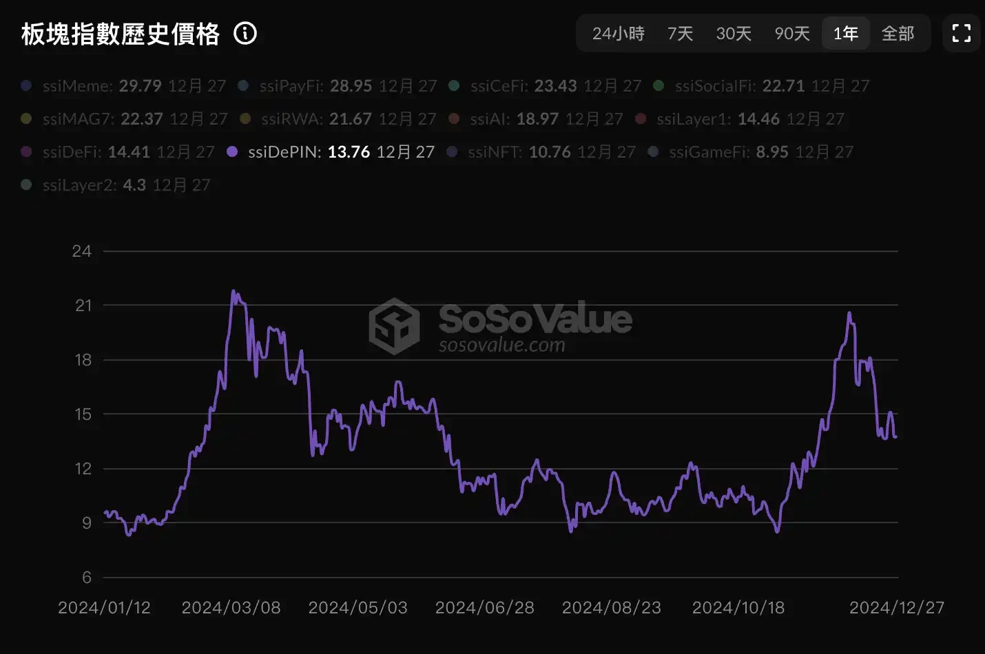 DePin 板块 2024 年指数变化;图源:SoSoValue