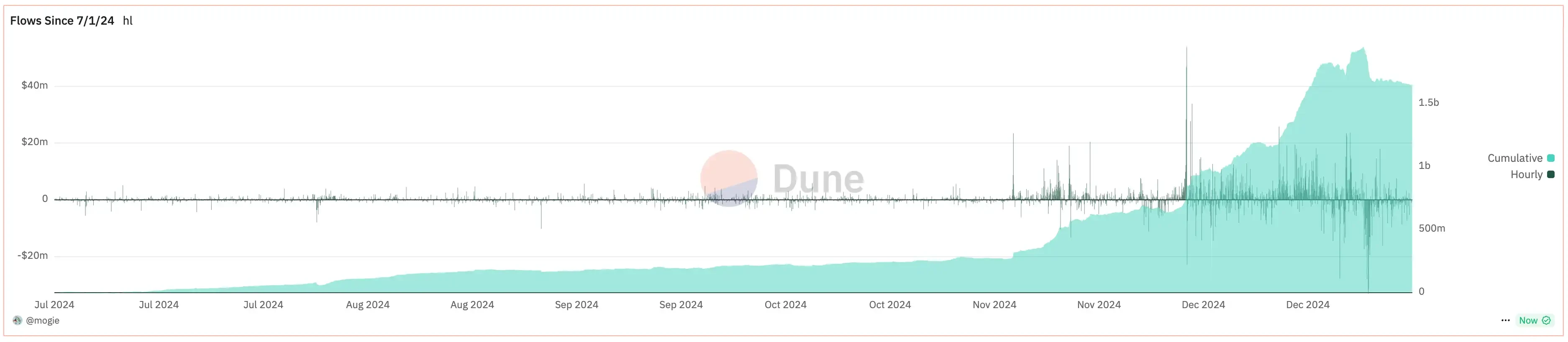 Hyperliquid 平台资金流入;数据来源:Dune Analytics