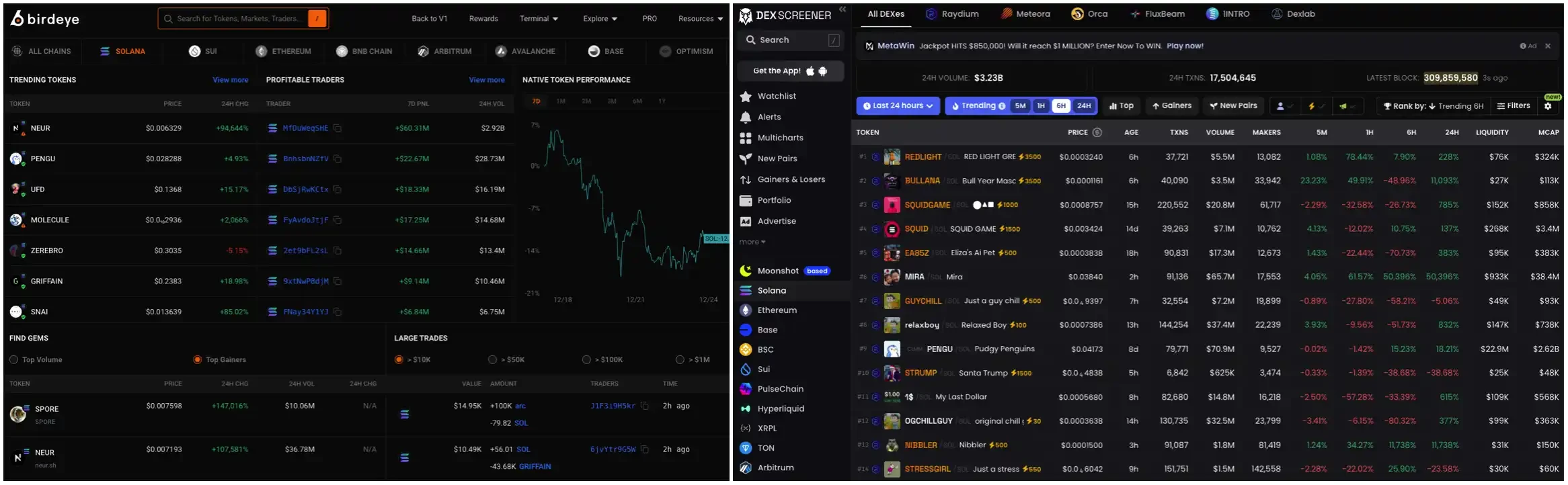 左:Birdeye,右:Dexscreener