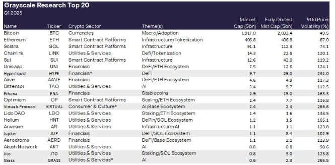 灰度2025年Q1严选:20个具有高增长潜力的代币