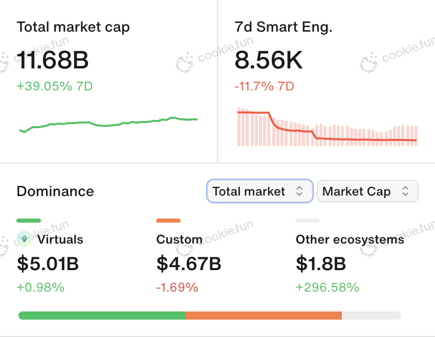 ai16z与Virtuals主导AI Agent市场,贡献超过半数份额