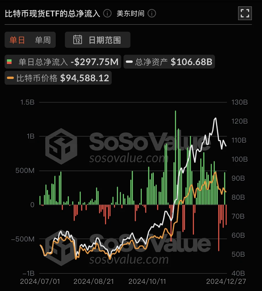 截至发文,本周一的官方 ETF 流入/流出数据暂未完全公布,但据 Lookonchain 的链上监测, 昨日十只美国比特币 ETF 净流出 3000 枚 BTC(2.7559 亿美元); 九只以太坊 ETF 净流入 16359 枚 ETH(5433 万美元),趋势似乎依旧未变。