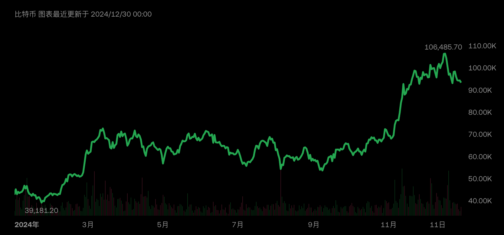 又到了年终总结的时间。2024 年的行情流转繁杂,比特币现货 ETF 的获批,减半事件如期而至,价格一路飙升,算力再创新高,生态兴起、政坛风云变幻,利好不断……诸多因素推动着 BTC 掀起全球投资热潮,币价屡创新高,突破 10 万美金大关,Google trends 指数较去年劲增一倍有余,开启高光时刻!对于整个加密行业而言, 2024 年是具有里程碑意义的一年。每项重大事件均镌刻着比特币乃至整个加密货币市场未来前行的轨迹。