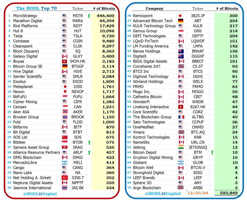 如此成效,引来的是更多上市公司的前赴后继。11 月 19 日,Nano Labs Ltd(Nasdaq:NA)宣布打算将剩余现金流的一部分分配给比特币, 并将其作为长期战略储备资产持有 ;同一天,美股上市公司 Genius Group Limited(GNS)宣布已斥资 1000 万美元买入 110 枚 BTC,均价 90, 932 美元;专注于烈酒和饮料行业的小众电子商务平台、美国上市公司 LQR House Inc.(LQR)宣布其董事会已批准购买价值 100 万美元的比特币作为其资金管理战略的一部分;11 月 20 日,美股上市生物制药公司 Acurx Pharmaceuticals(ACXP) 董事会批准购买 100 万美元比特币作为储备资产;当天,另一美国上市公司 Hoth Therapeutics(HOTH) 宣布公司董事会批准购买高达 100 万美元的比特币……看得出来,许多上市公司已经完全认可了 BTC 的价值存储功能及股价提振作用,纷纷加入了这场「BTC 战略储备竞赛」。