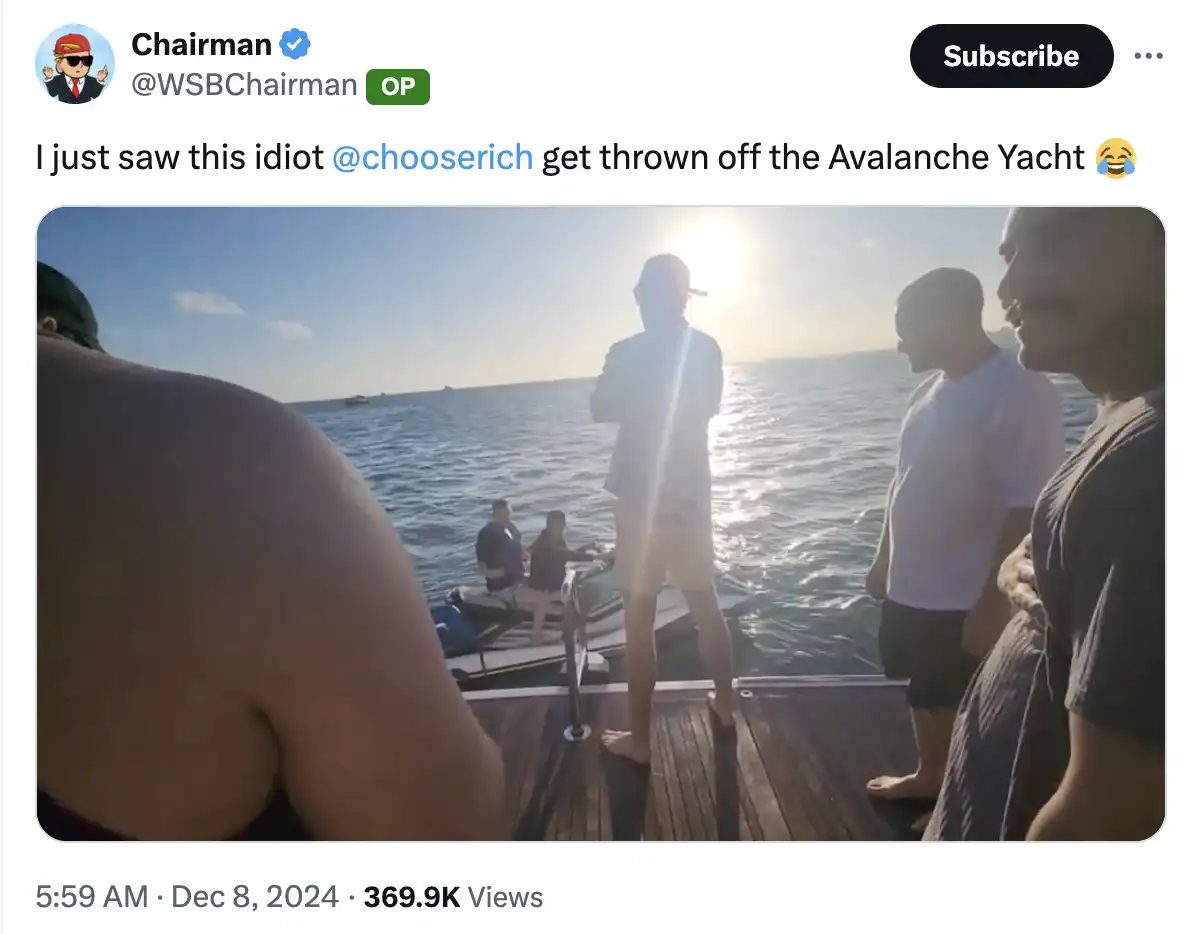 27、@chooserich 被踢出 Avalanche 的游艇活动。