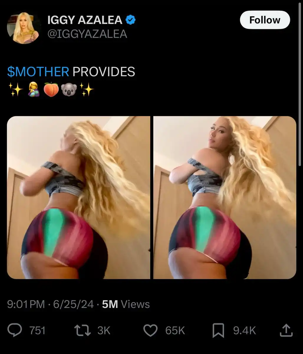 4、Iggy Azalea 推出了 $Mother,引爆了名人发行代币的新风潮。