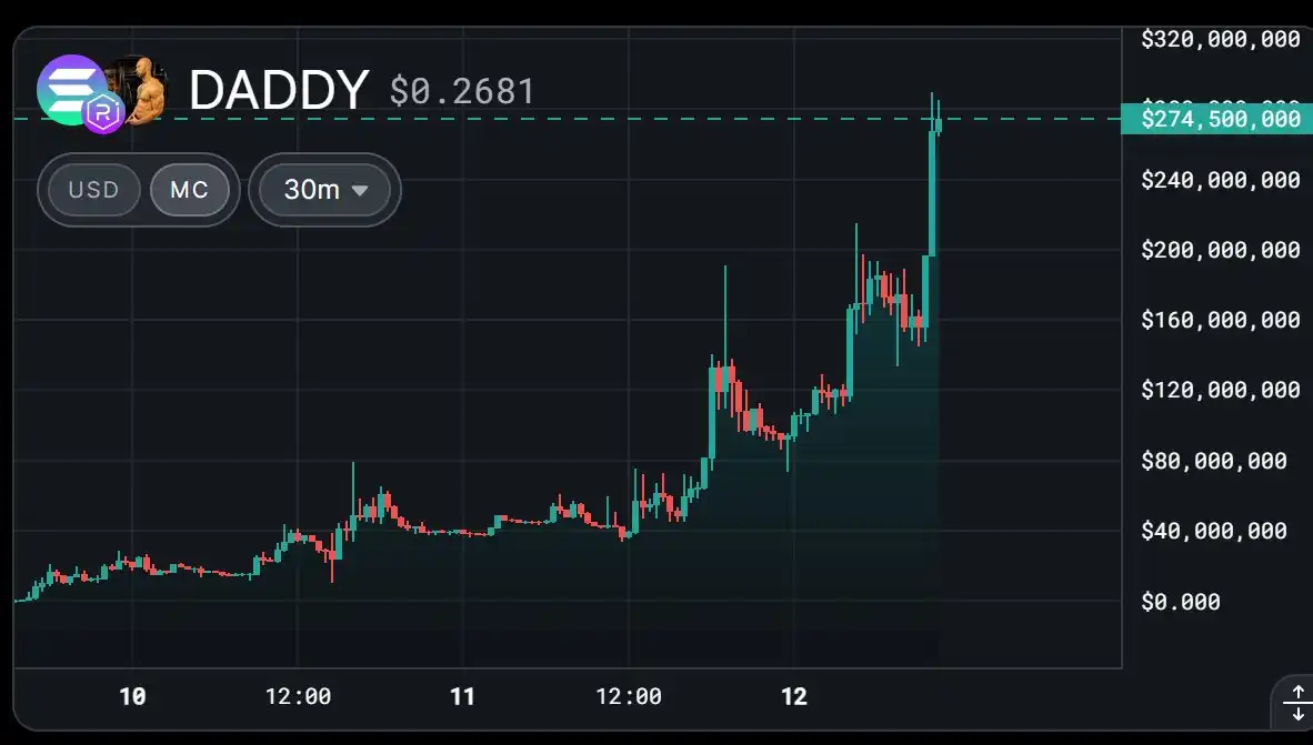 9、@Cobratate 推出了 $DADDY,市值达到 2.9 亿美元,并销毁了价值 1.1 亿美元的代币。