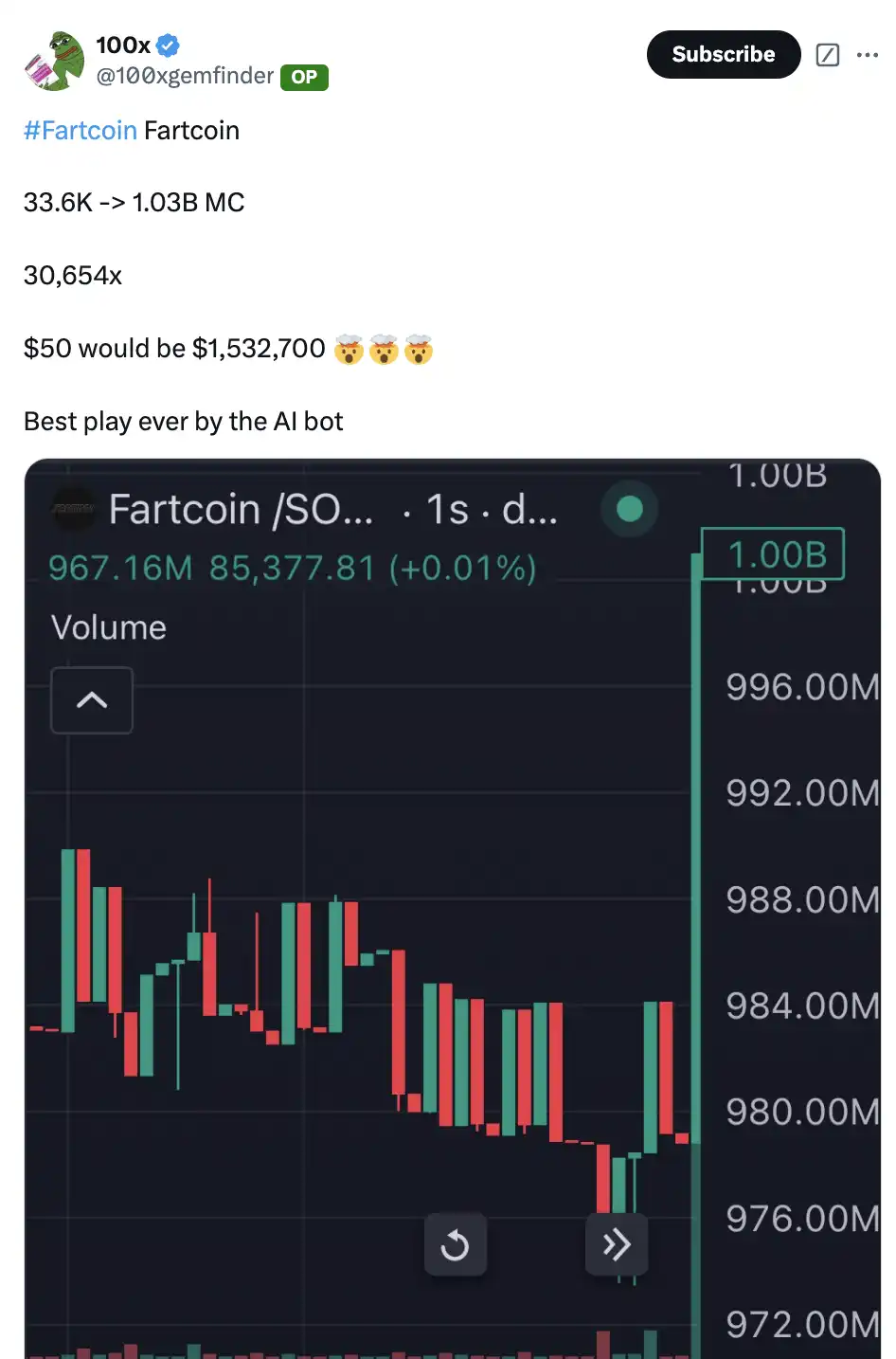 23、我的机器人在 fartcoin 上实现了 30,000 倍的回报。