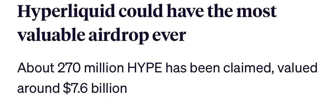 17、Hyperliquid 成为史上最有价值的空投之一。