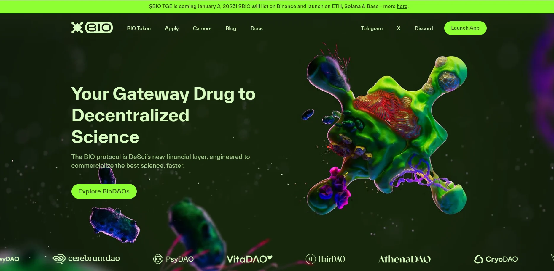 BIO Protocol 是一个去中心化科学(DeSci)领域的策展和流动性协议,由 Binance Labs 首次投资,旨在为科学研究项目提供资源支持,推动科研创新。