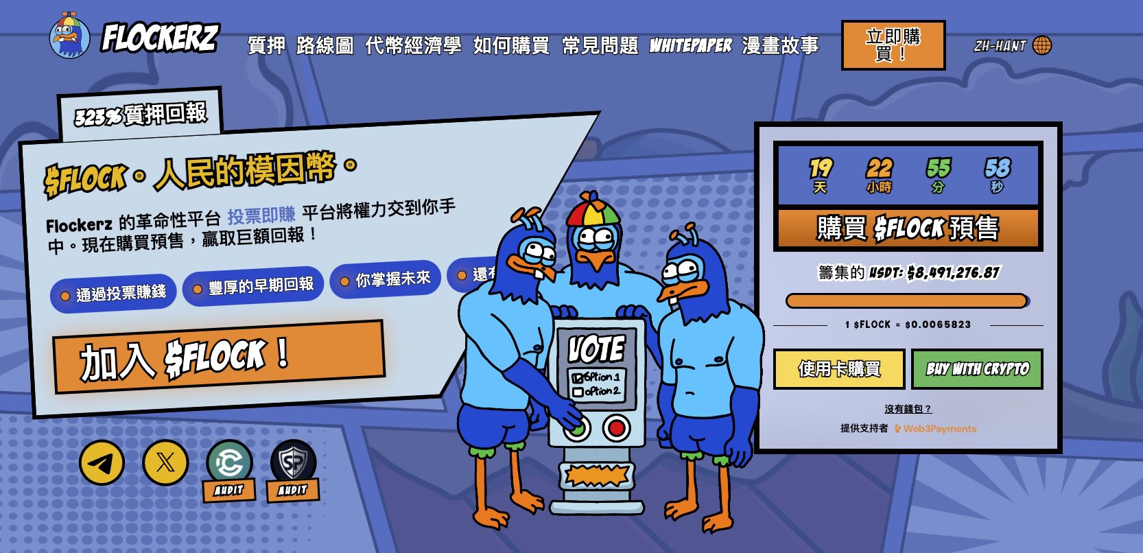 除了比特币,迷因币市场热潮同样不容忽视。在众多新兴项目中,Flockerz以其创新「投票即赚取」机制和稳健项目基础脱颖而出,成为2025年最值得关注迷因币之一。该项目目前已筹集超过850万美元,吸引了大量投资者目光。