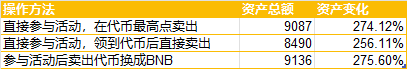 当然,以上的方法或许并不是收益最大化的方案。相信不少人认为,如果引入複利思维,将每次通过参与获得所获得奖励或者代币卖出并𧹒为 BNB,这样能够实现 BNB 的数量变多,也就有了更多的本金去参与活动,总体收益应该会变得更多。