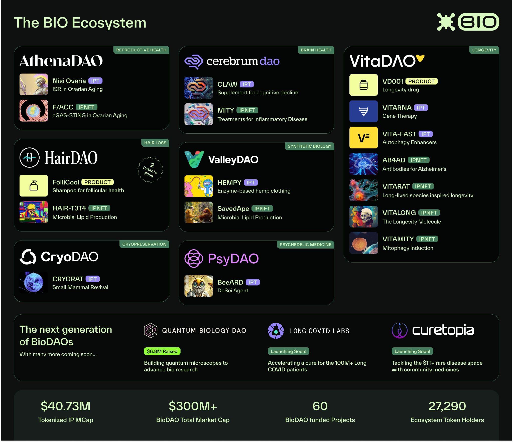目前,BioDAO 的8 个 DAO 已经经历了 BIO 加速计划的第一次迭代,累计市值超过 3 亿美元。最近推出的 BioDAO Quantum Biology获得了 13 倍的超额认购,筹集了超过 680 万美元的初始资金。