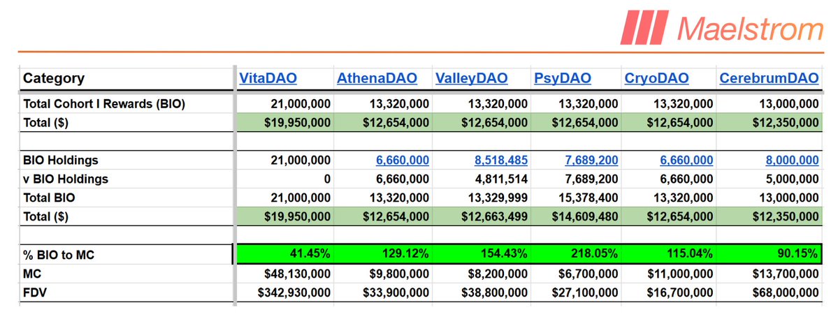 1月3日,Arthur Hayes 转发文章《Degen DeSci》,指出早期 BioDAO 如 VitaDAO 和 CryoDAO 将获得 BIO 巨额奖励。例如,PsyDAO 获得的 1540 万枚 BIO 代币,其价值甚至超过 DAO 本身市值(BIO 盘前价 0.95 美元计算)。