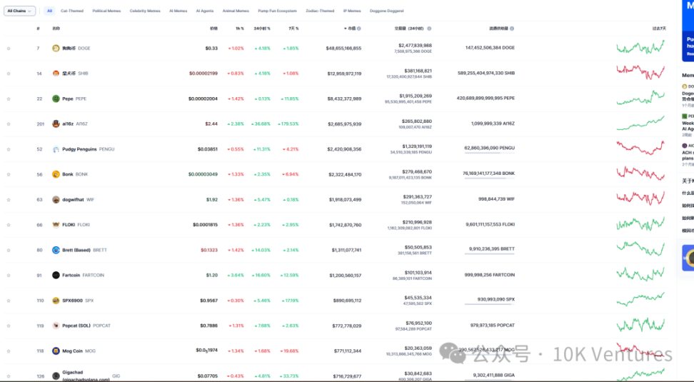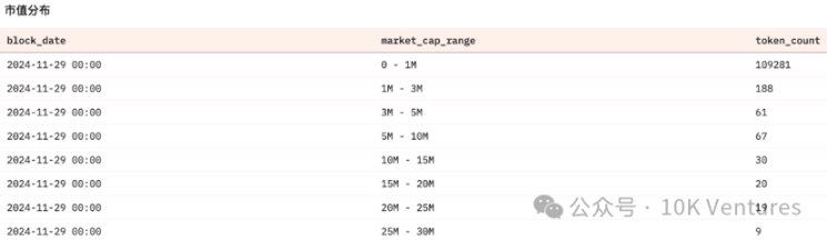 从以下数据可以看出, 99% 的 Meme 都无法突破 1 M 市值。能从数十万个 Meme 冲出重围的 Meme,也是一将功成万骨枯。